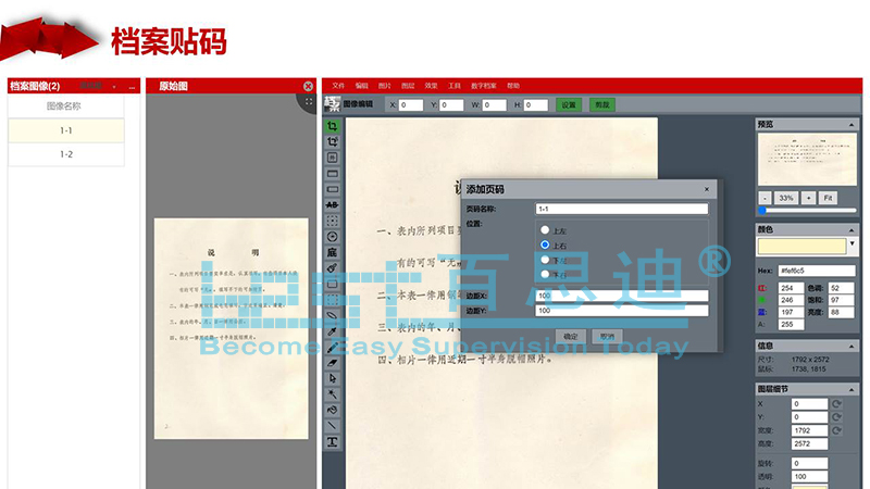 7、檔案貼碼。系統(tǒng)自動(dòng)修改分類號(hào)和頁(yè)碼。減少返工工作量。