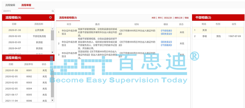 考察方案管理。提出民主推薦和考察的總體工作方案,并輸出形成文檔,并對(duì)接辦公系統(tǒng)實(shí)現(xiàn)文件審批流轉(zhuǎn)。